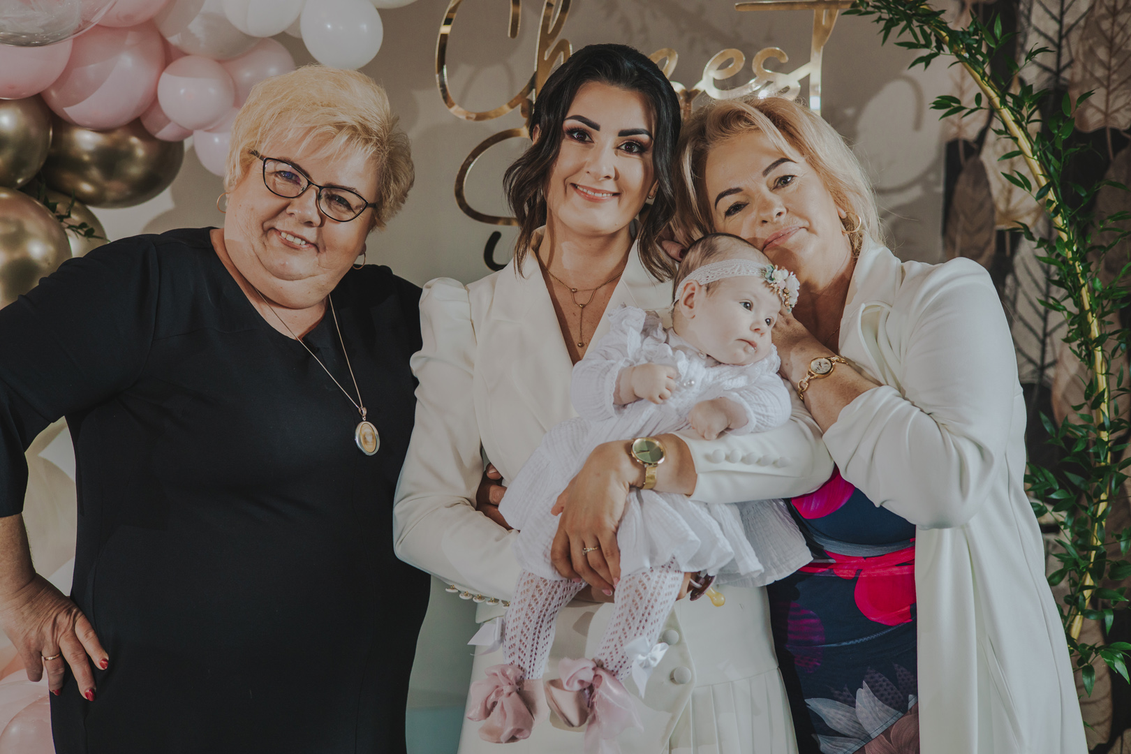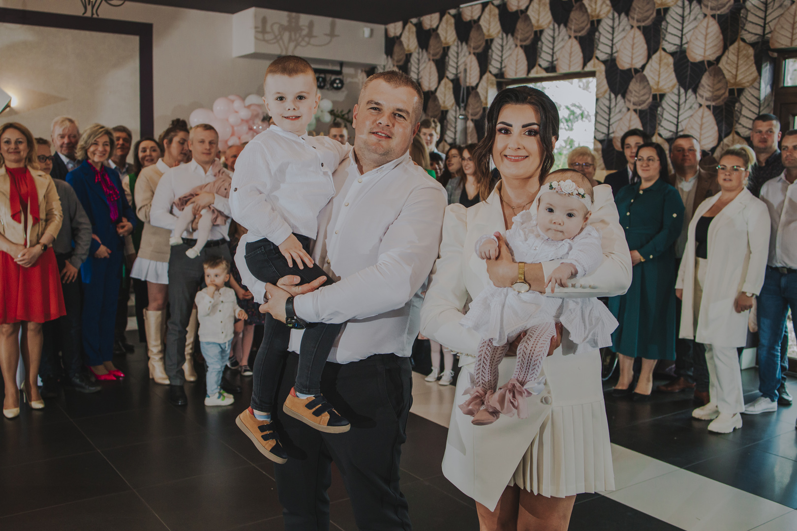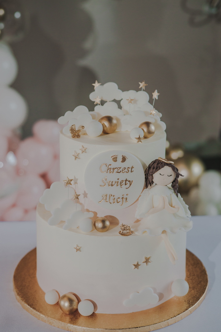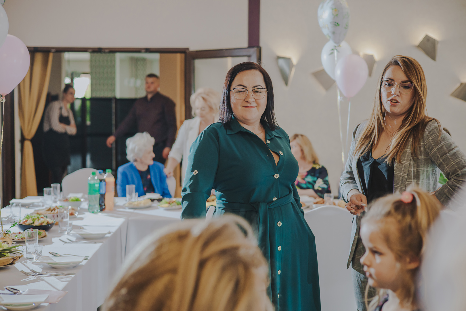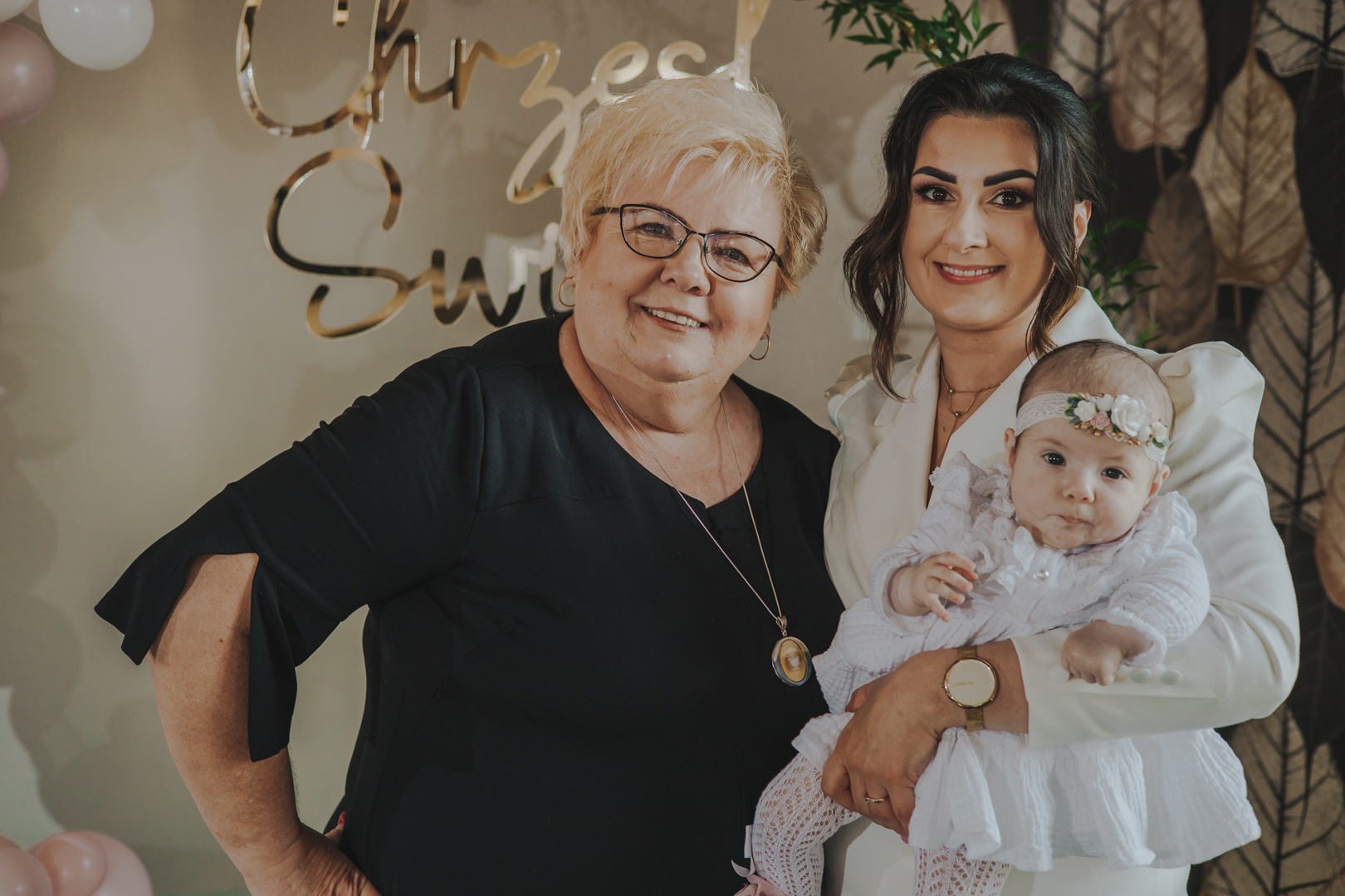 Kiedy nie śpi dziecko, wchodzimy na sale i zaczynamy od sesji. Ten dzień może dać się we znaki dziecku, a wiemy, że sen jest najlepszym odstresowaczem, dlatego dopóki nie śpi wykorzystujemy sytuację. Wykonuję zdjęcie grupowe i sesje indywidualną na ściance lub w ogrodzie. Kolejno kilka fot podczas wręczania prezentów dziecku i obiad. Fotograf ma wtedy czas wolny. Kuchnia wydaje dania, podczas posiłków nie fotografujemy. Często na deser wjeżdża tort. ostatni krok. Piękne, pamiątkowe zdjęcia przy torcie są zwieńczeniem reportażu.