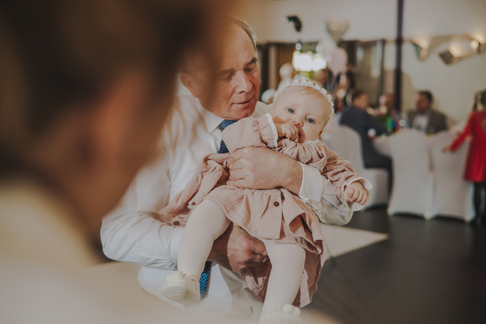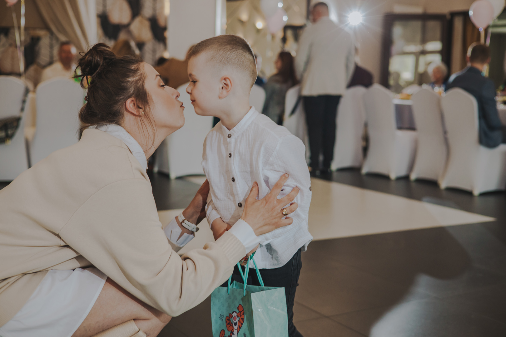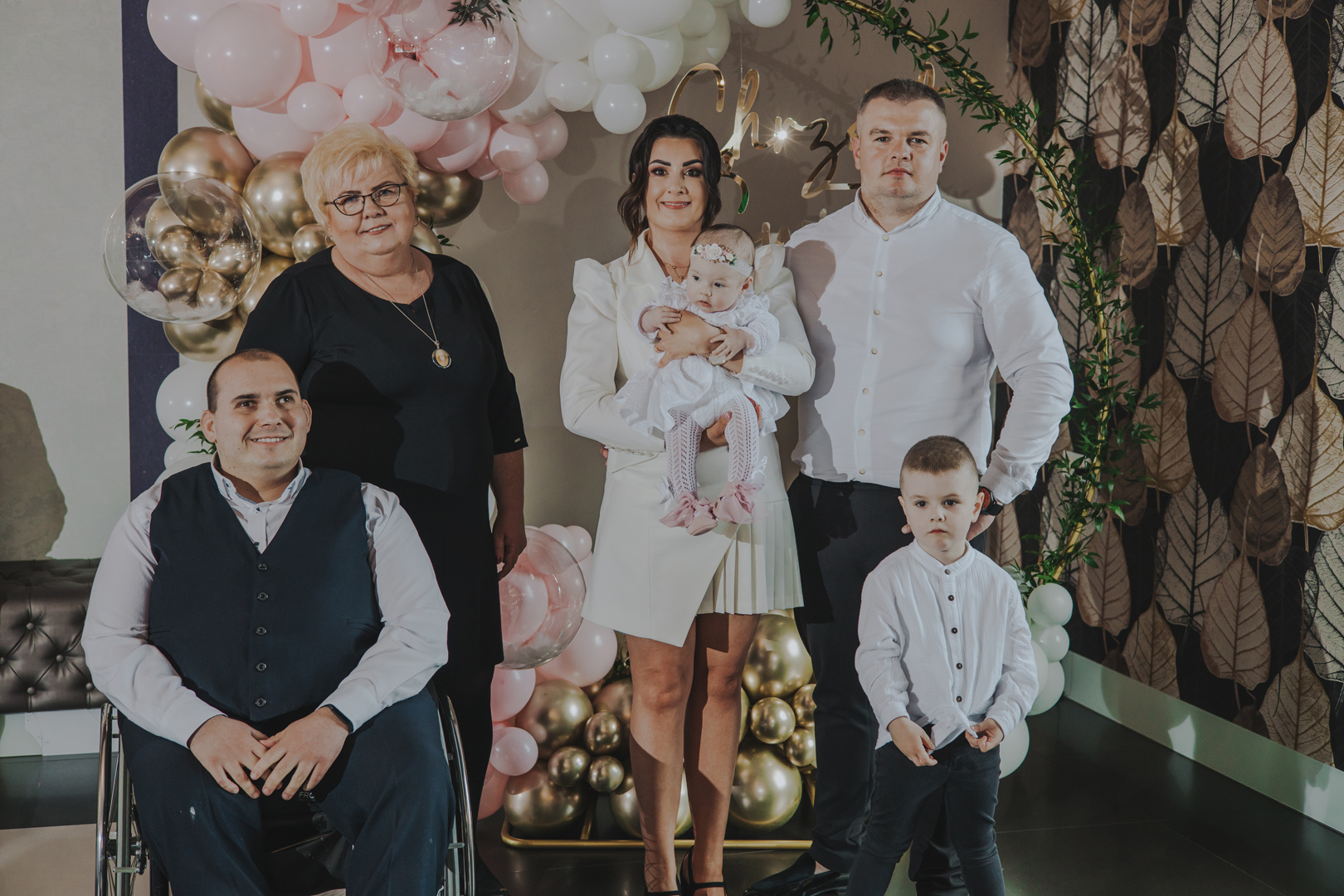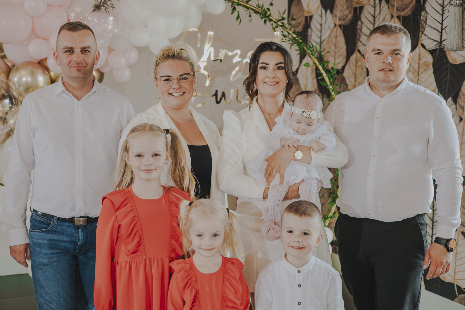 Kiedy nie śpi dziecko, wchodzimy na sale i zaczynamy od sesji. Ten dzień może dać się we znaki dziecku, a wiemy, że sen jest najlepszym odstresowaczem, dlatego dopóki nie śpi wykorzystujemy sytuację. Wykonuję zdjęcie grupowe i sesje indywidualną na ściance lub w ogrodzie. Kolejno kilka fot podczas wręczania prezentów dziecku i obiad. Fotograf ma wtedy czas wolny. Kuchnia wydaje dania, podczas posiłków nie fotografujemy. Często na deser wjeżdża tort. ostatni krok. Piękne, pamiątkowe zdjęcia przy torcie są zwieńczeniem reportażu.