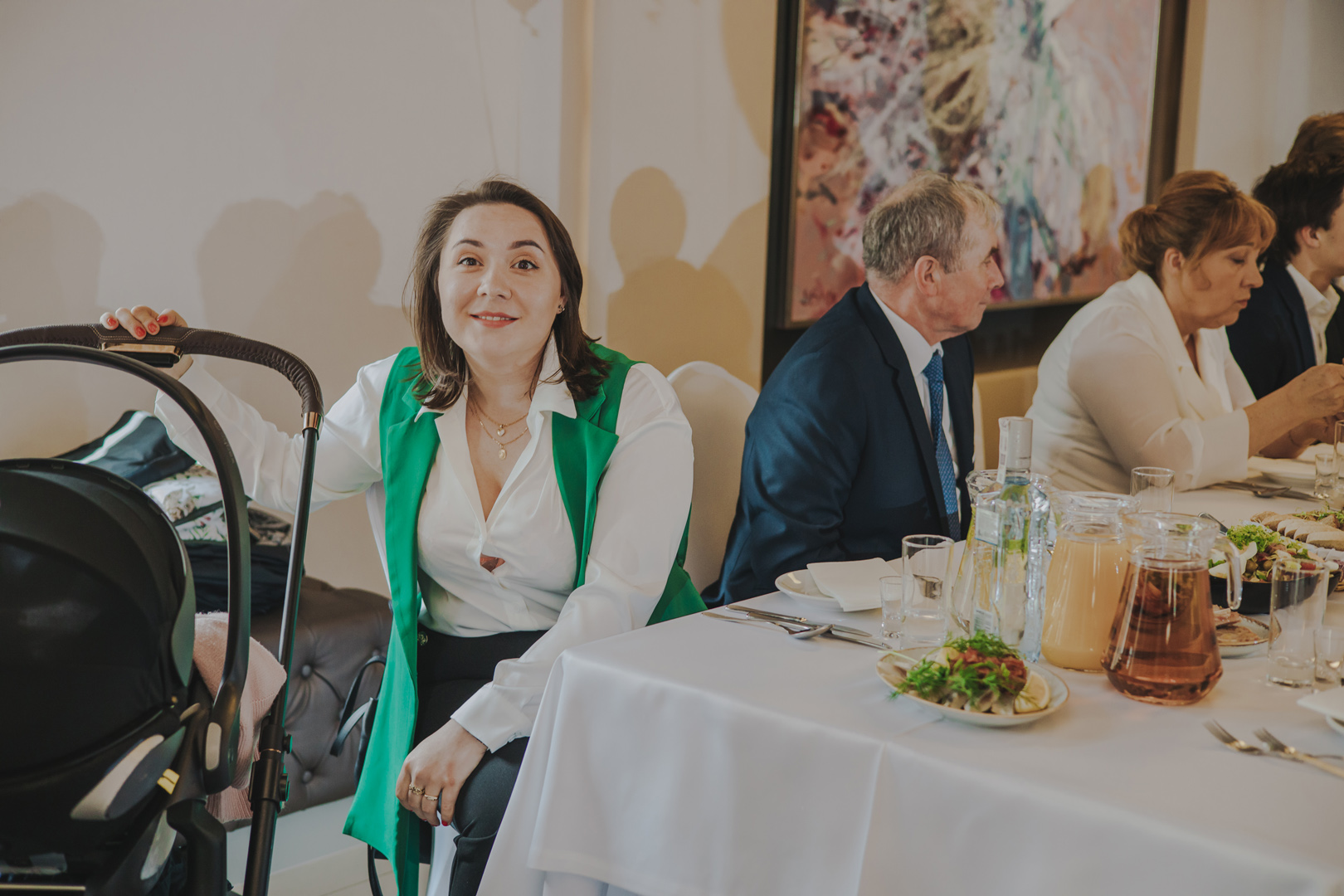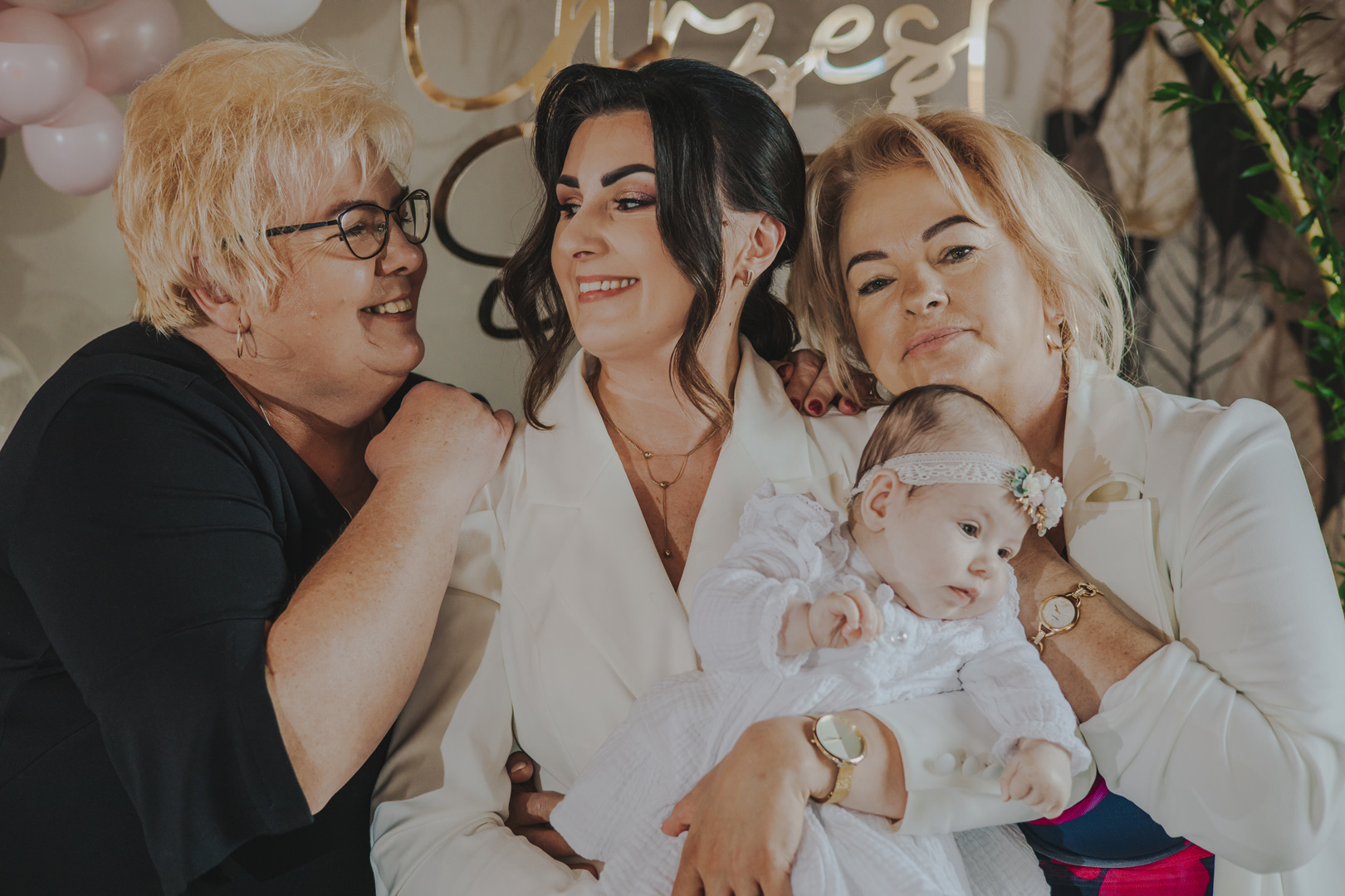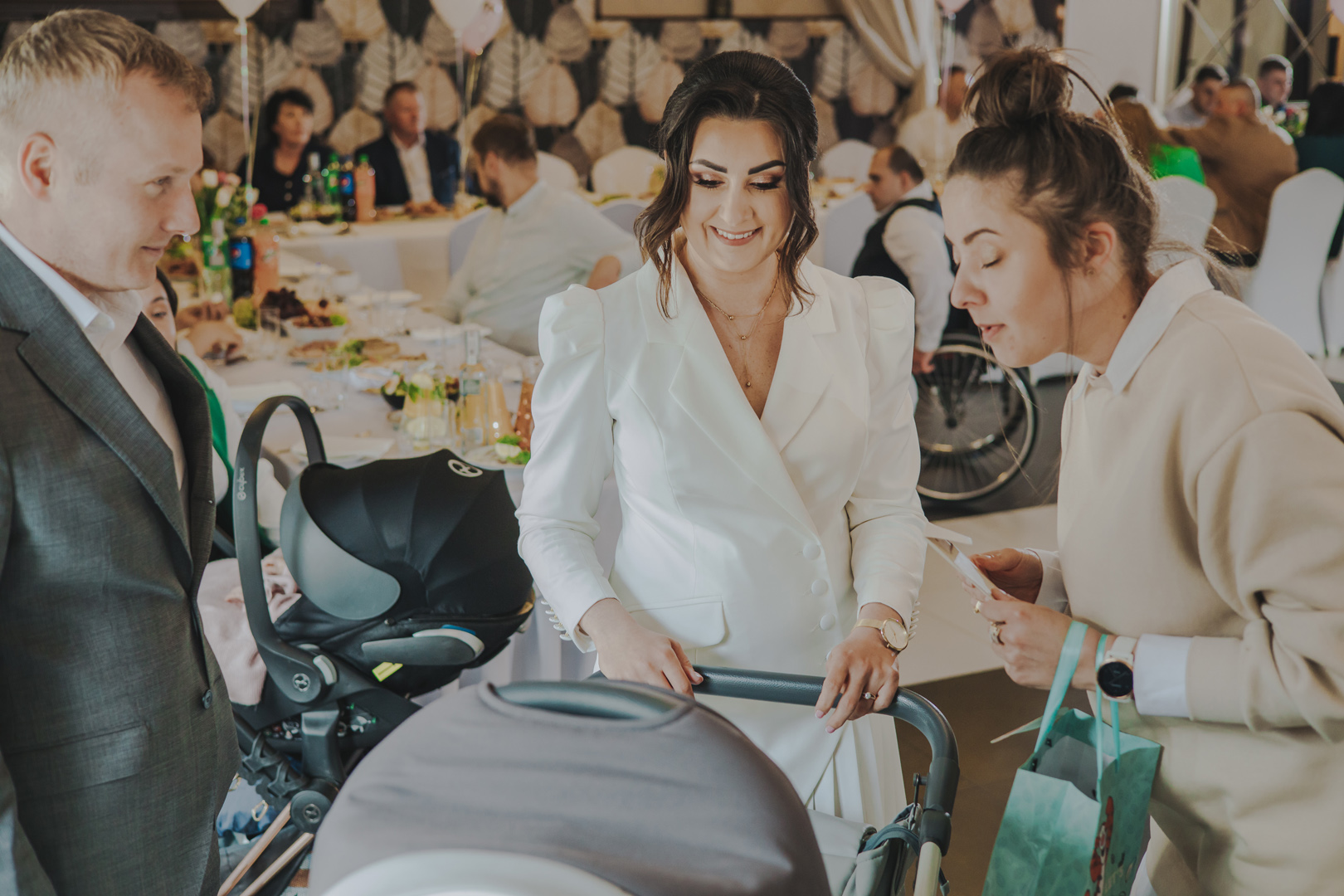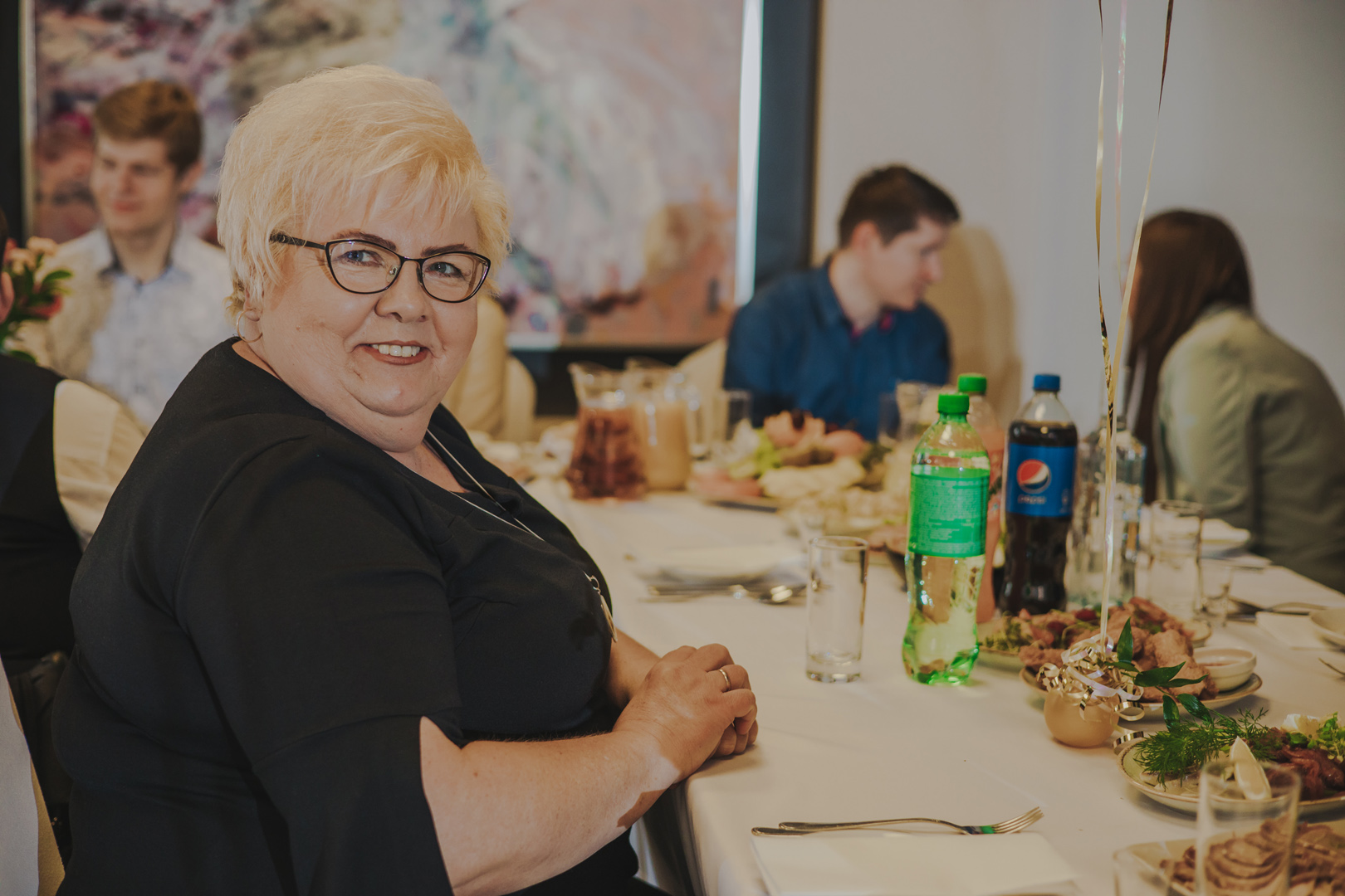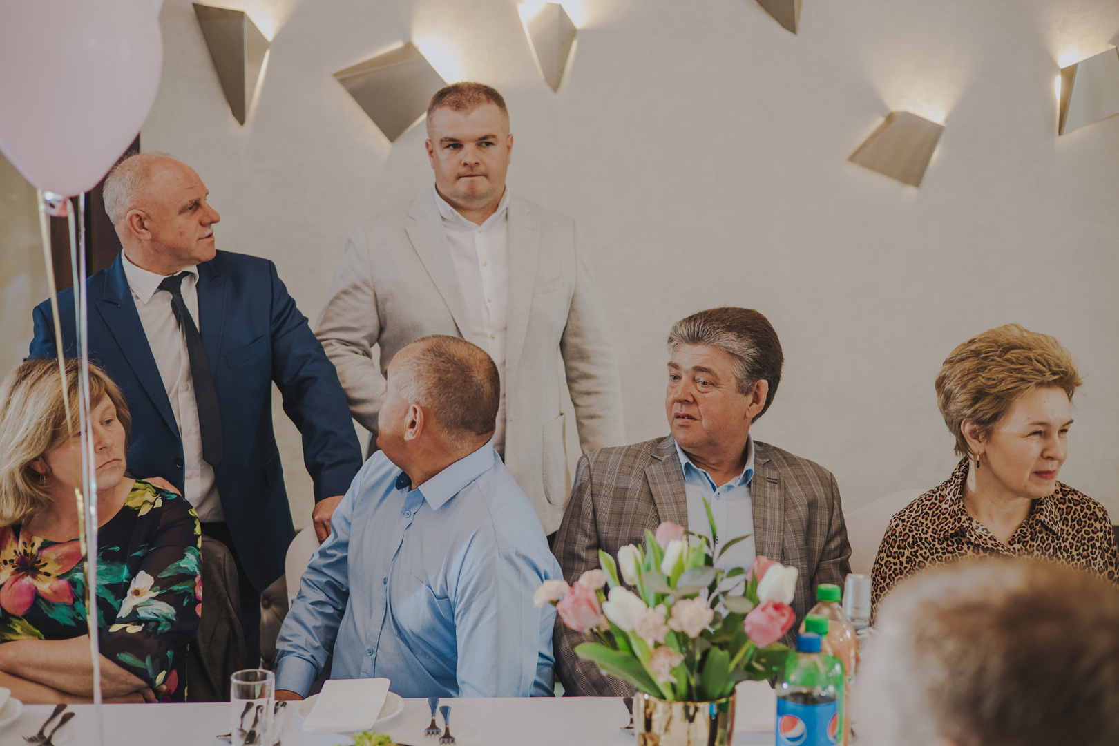 Kiedy nie śpi dziecko, wchodzimy na sale i zaczynamy od sesji. Ten dzień może dać się we znaki dziecku, a wiemy, że sen jest najlepszym odstresowaczem, dlatego dopóki nie śpi wykorzystujemy sytuację. Wykonuję zdjęcie grupowe i sesje indywidualną na ściance lub w ogrodzie. Kolejno kilka fot podczas wręczania prezentów dziecku i obiad. Fotograf ma wtedy czas wolny. Kuchnia wydaje dania, podczas posiłków nie fotografujemy. Często na deser wjeżdża tort. ostatni krok. Piękne, pamiątkowe zdjęcia przy torcie są zwieńczeniem reportażu.