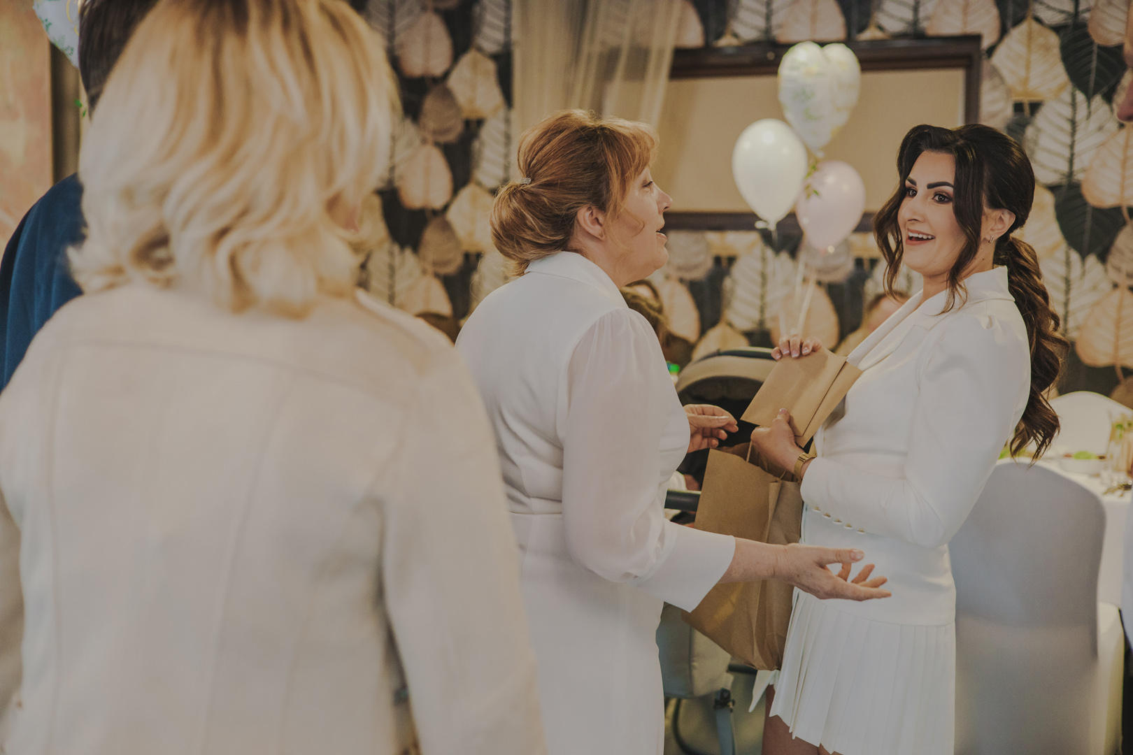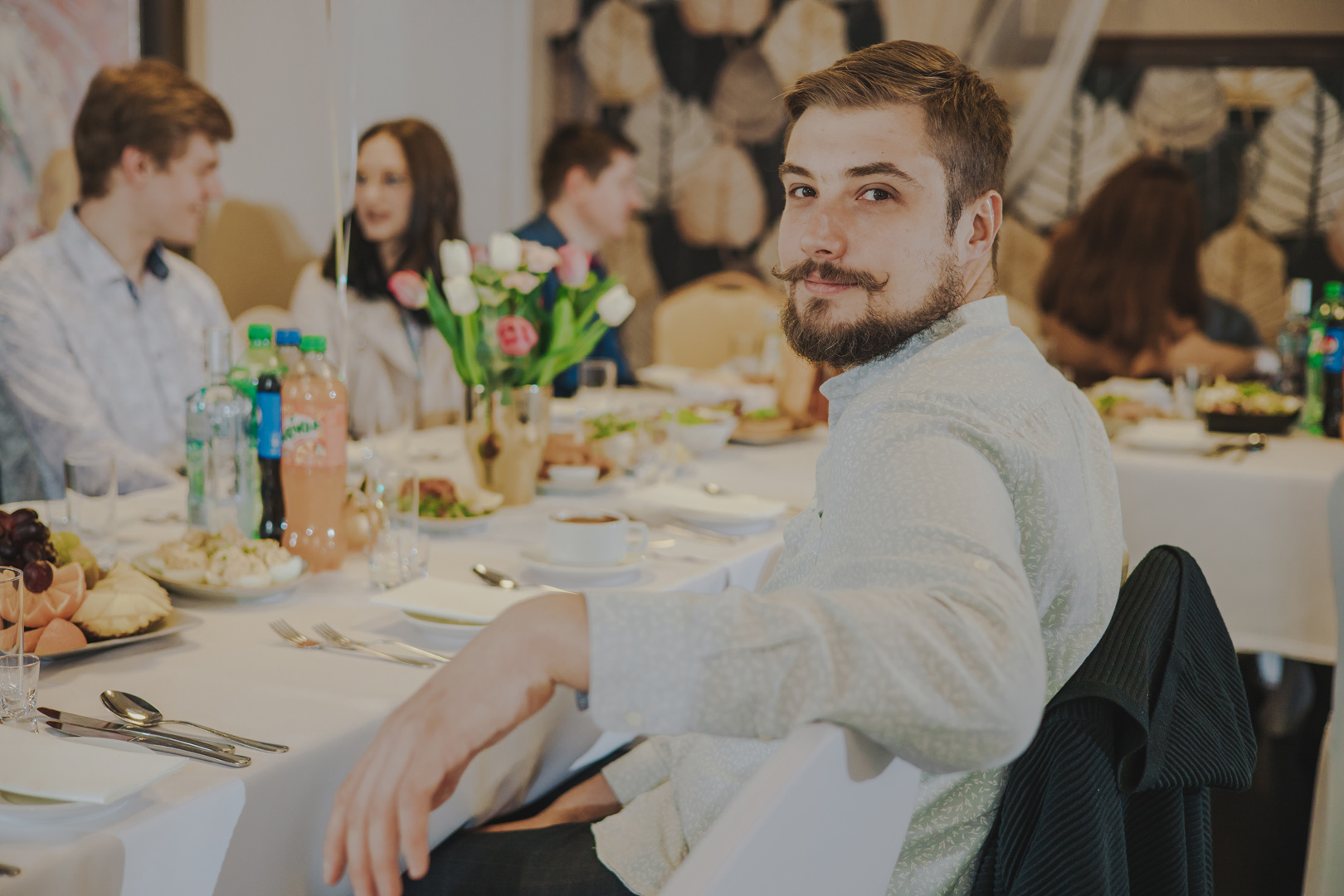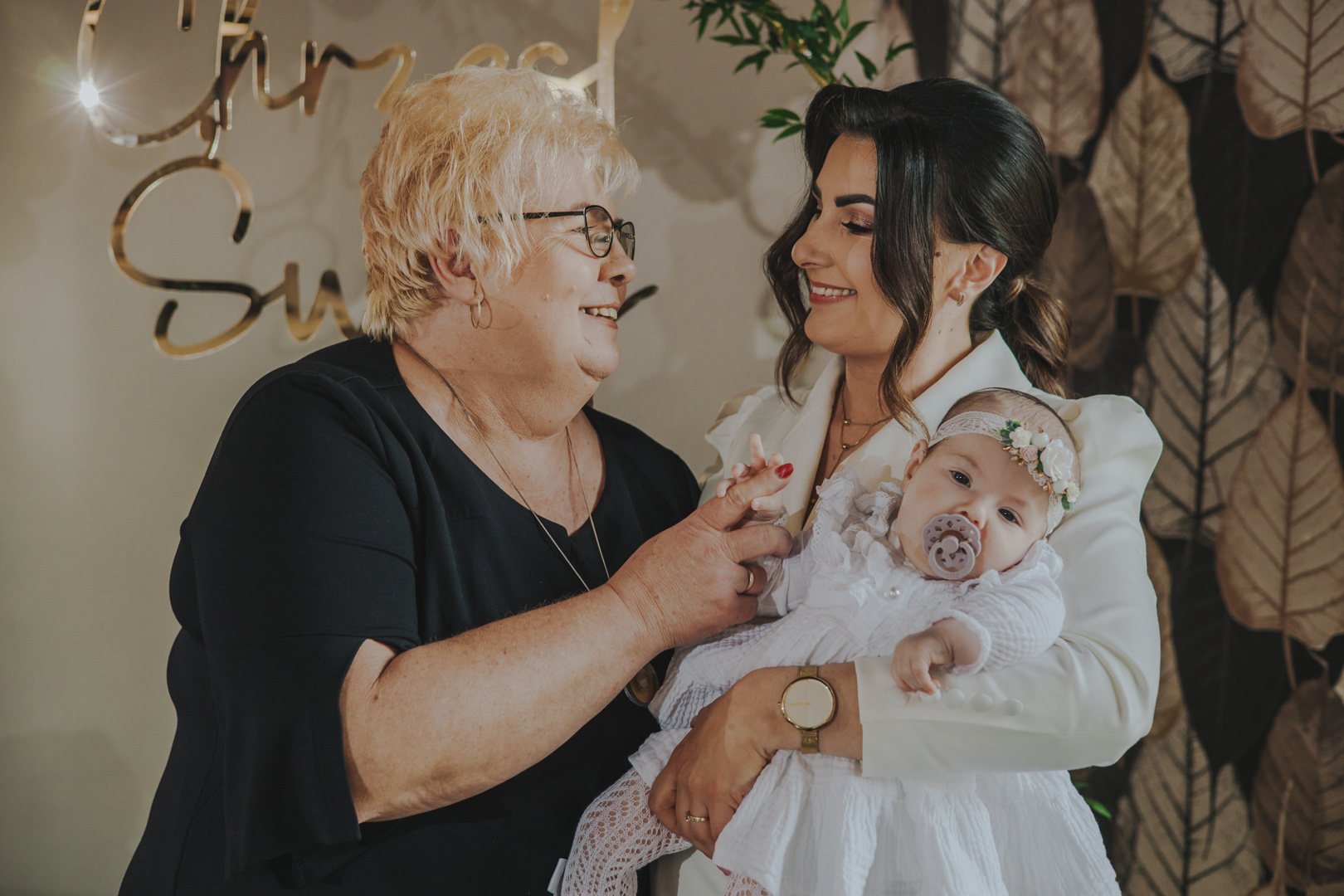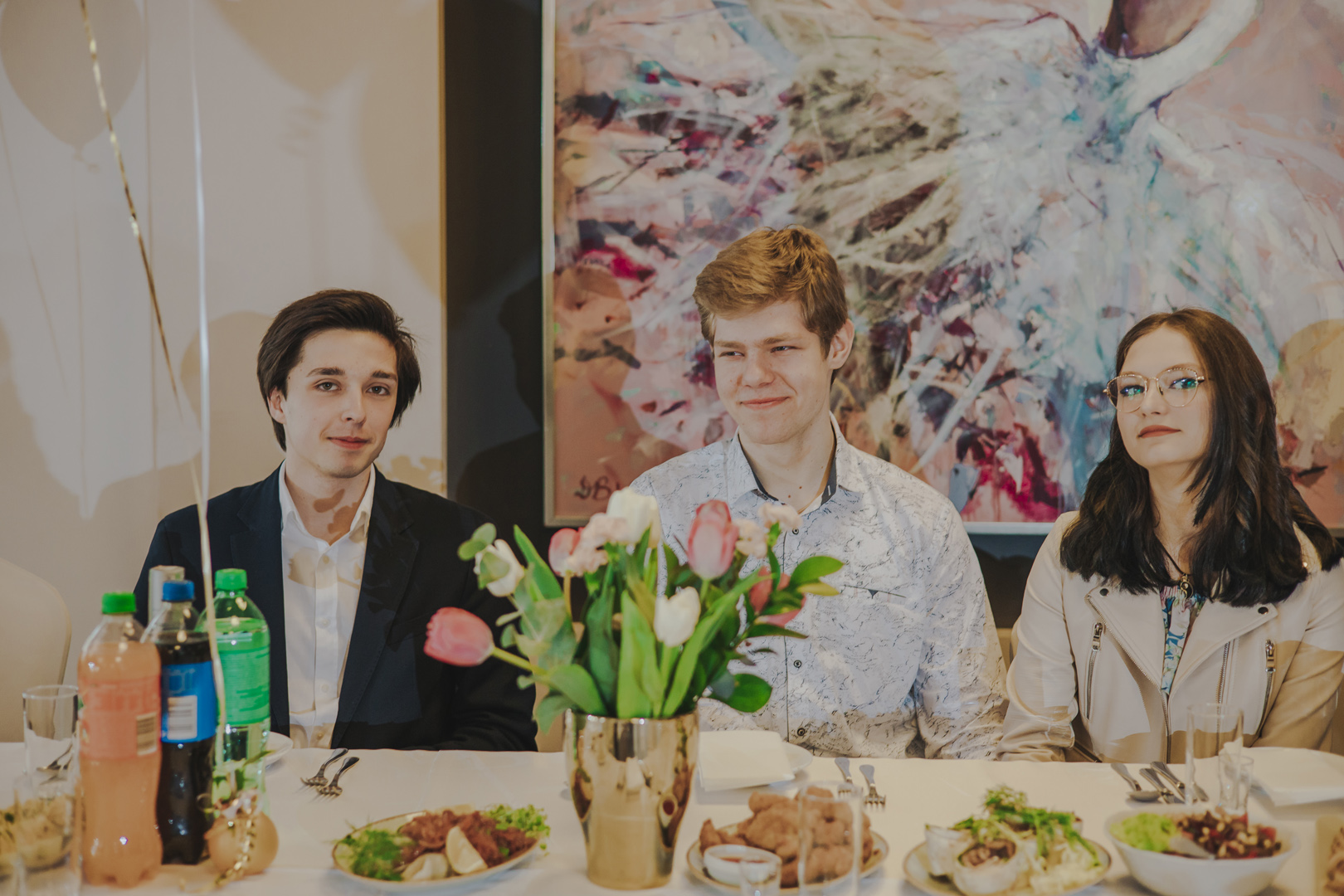 Kiedy nie śpi dziecko, wchodzimy na sale i zaczynamy od sesji. Ten dzień może dać się we znaki dziecku, a wiemy, że sen jest najlepszym odstresowaczem, dlatego dopóki nie śpi wykorzystujemy sytuację. Wykonuję zdjęcie grupowe i sesje indywidualną na ściance lub w ogrodzie. Kolejno kilka fot podczas wręczania prezentów dziecku i obiad. Fotograf ma wtedy czas wolny. Kuchnia wydaje dania, podczas posiłków nie fotografujemy. Często na deser wjeżdża tort. ostatni krok. Piękne, pamiątkowe zdjęcia przy torcie są zwieńczeniem reportażu.