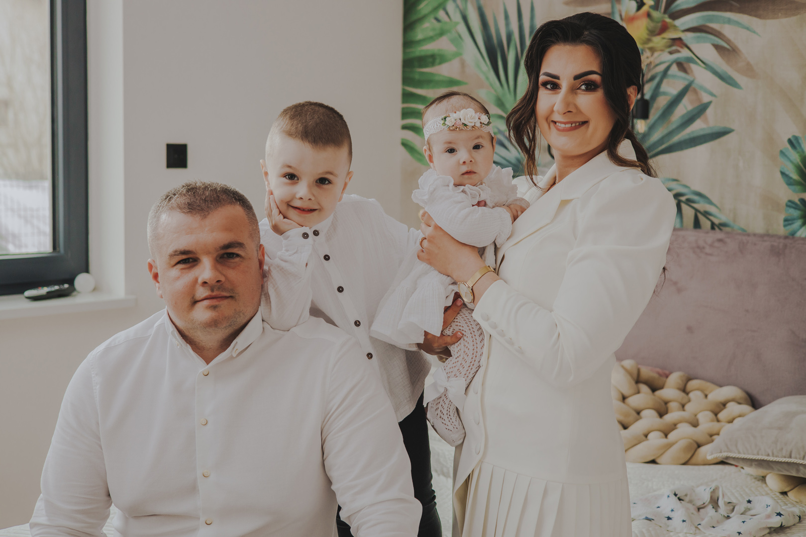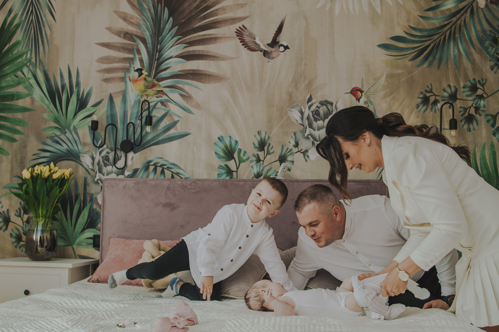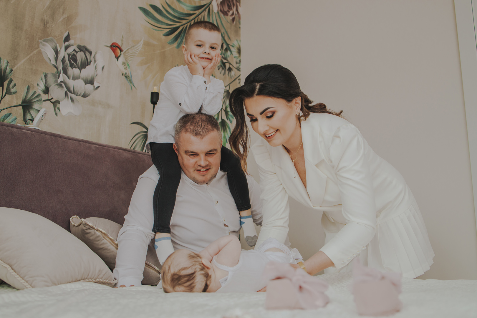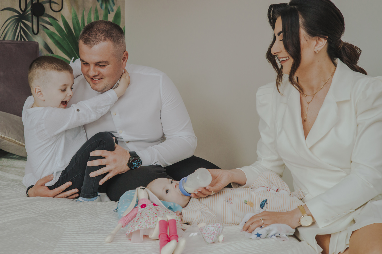 Ubieranie dziecka to jeden z ważniejszych punktów, dziecko jest w swoim domu, wszystko jest mu znane, dlatego też czuje się swobodnie. Musimy pamiętać, że każda mała zmiana dla nas to kolosalna zmiana dla maluszka. Poza tym dom, to miejsce gdzie możemy zrobić sesję rodzinną bez pośpiechu i stresu.