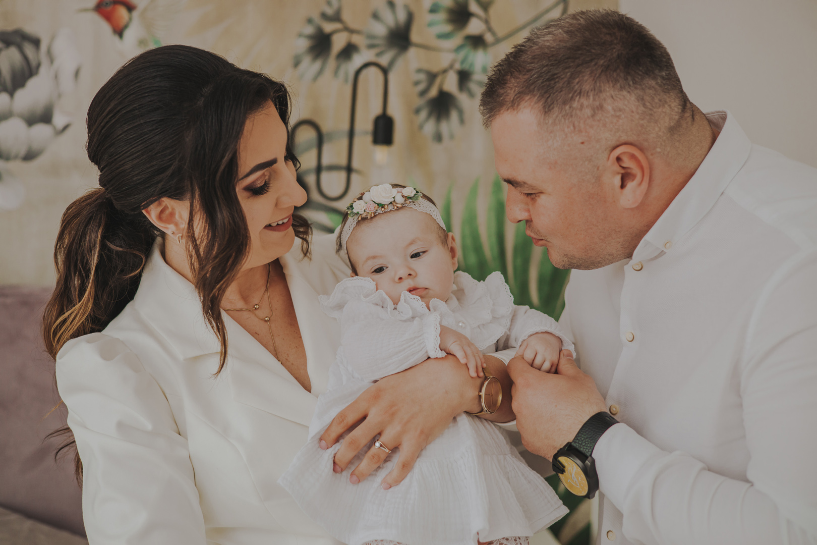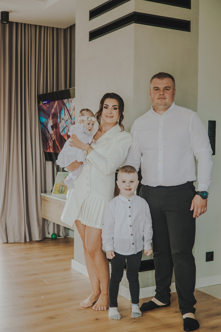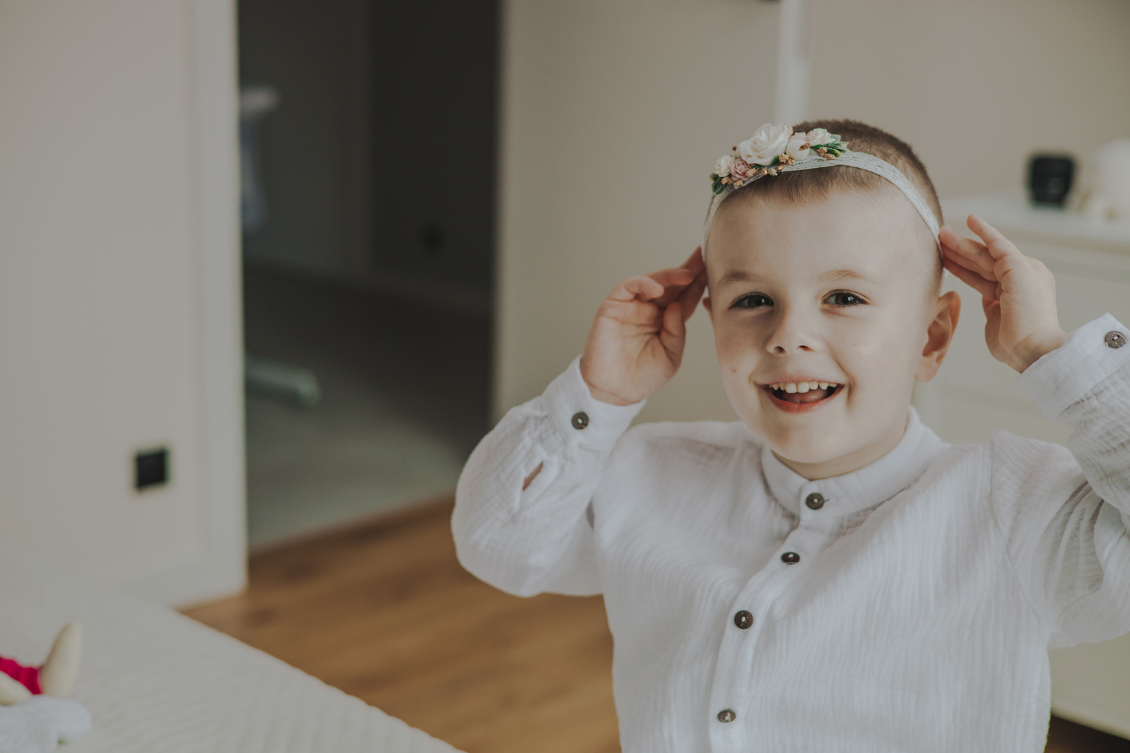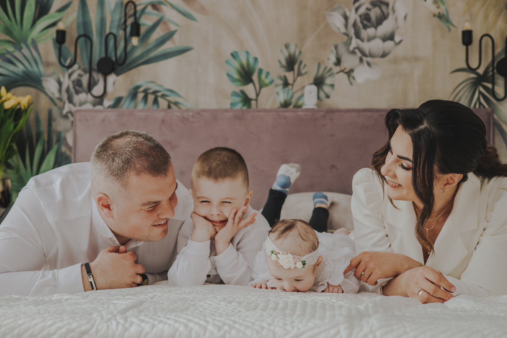 Ubieranie dziecka to jeden z ważniejszych punktów, dziecko jest w swoim domu, wszystko jest mu znane, dlatego też czuje się swobodnie. Musimy pamiętać, że każda mała zmiana dla nas to kolosalna zmiana dla maluszka. Poza tym dom, to miejsce gdzie możemy zrobić sesję rodzinną bez pośpiechu i stresu.