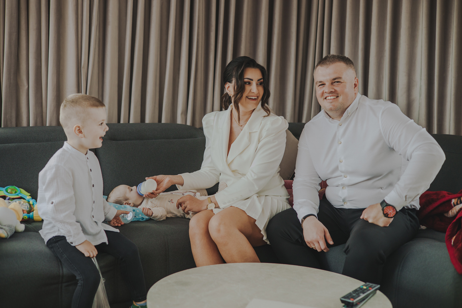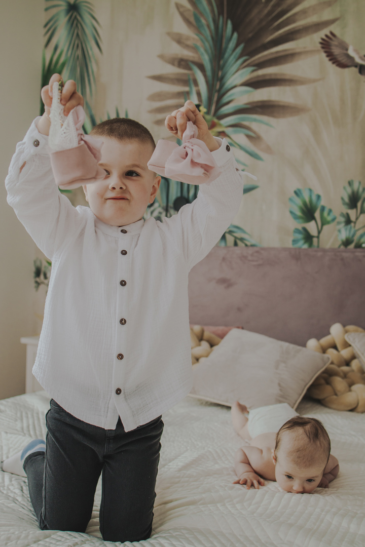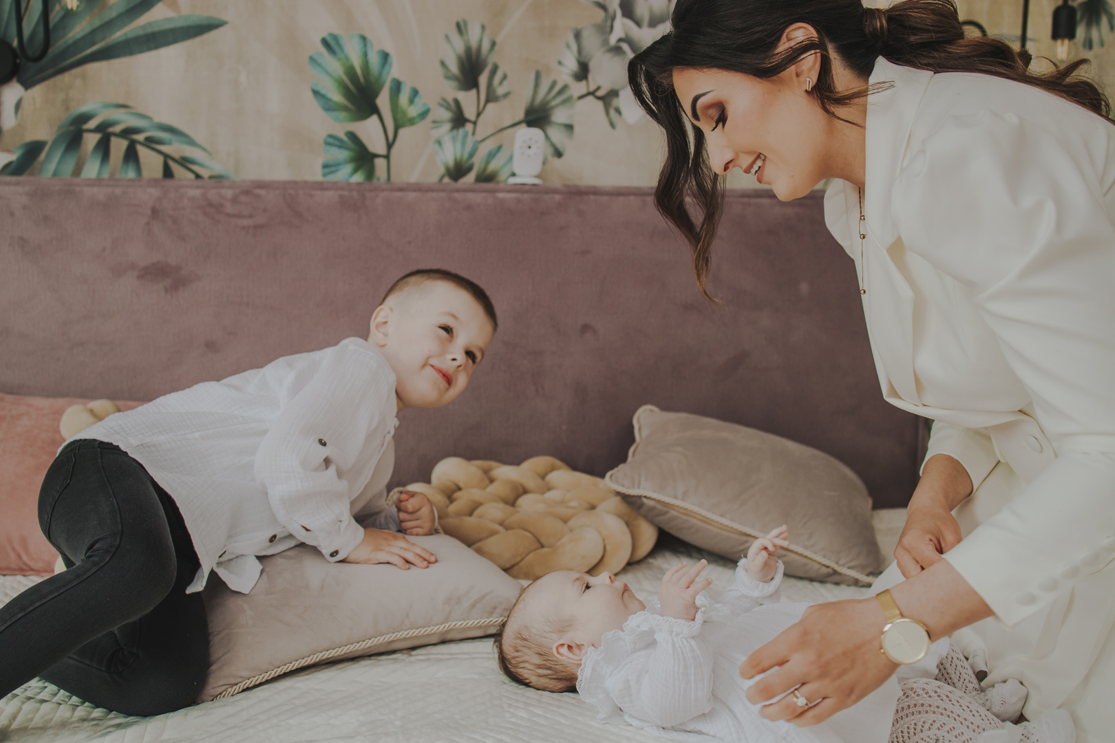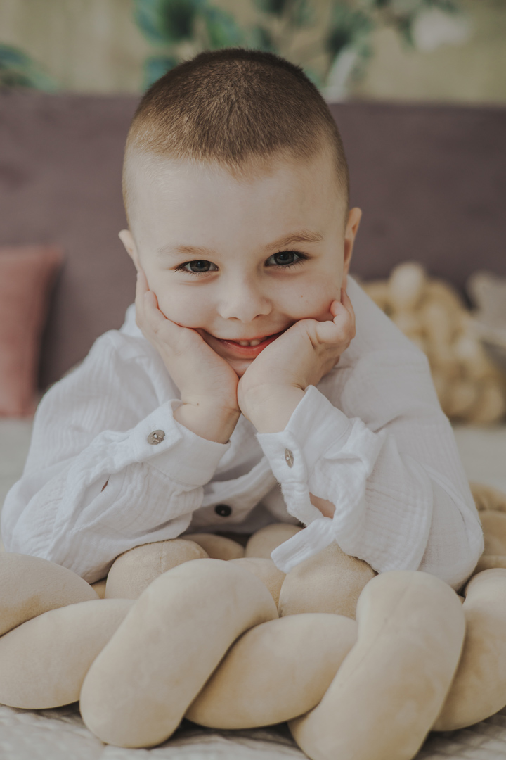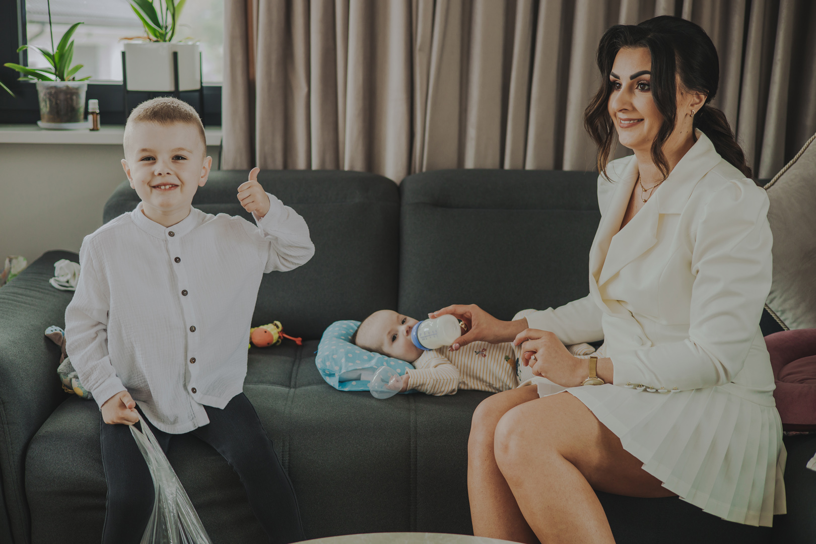 Ubieranie dziecka to jeden z ważniejszych punktów, dziecko jest w swoim domu, wszystko jest mu znane, dlatego też czuje się swobodnie. Musimy pamiętać, że każda mała zmiana dla nas to kolosalna zmiana dla maluszka. Poza tym dom, to miejsce gdzie możemy zrobić sesję rodzinną bez pośpiechu i stresu.